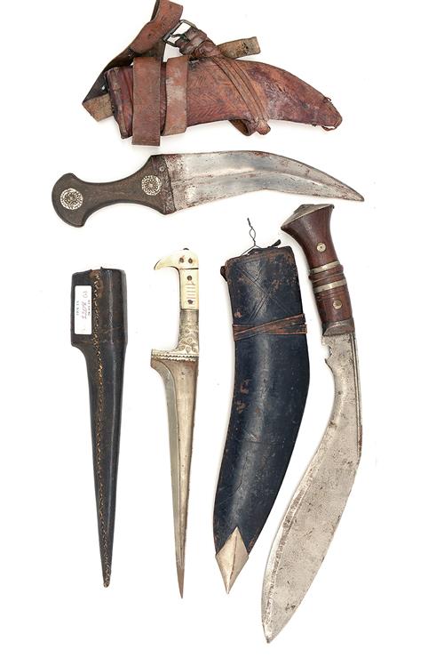 A KUKRI KNIFE, A PESH-KABZ AND AN ARABIC JAMBIYA, (3)