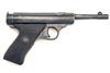 one of a limited number produced between 1936-1940, with round tapering 5in. barrel marked 'KAL 4.5mm' over 'CAL .177', blued air-chamber stamped 'VENUS WAFFENWERK ZELLA-MEHLIS' over 'MADE IN GERMANY' on the left hand side, articulated flush-fitting blued cocking link laying along the top of cylinder and stamped 'TELL MOD. 3' together with a depiction of a man holding a break-barrel air-rifle above an apple, dove-tailed blade fore-sight, elevating rear-sight, blued frame with brown mottled chequered bakelite one-piece grip, both sides of grip inlet with 'TELL' trademark medallions (some speckling and loss to the blued finish, hinge screws burred)