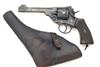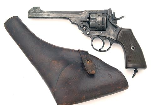 A .455 SERVICE-REVOLVER SIGNED WEBLEY & SCOTT, MODEL 'MKVI', serial no. 260479, dated for 1917, with 6in. barrel, break-open frame, fluted cylinder and chequered hard-rubber grips, finish worn, complete with a full-flap leather holster