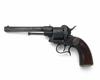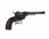 circa 1860, with round 6in. barrel, pinched pillar fore-sight, octagonal breech, plunge ejector, plain cylinder with external ratchet locking, plain stepped open frame, hinged loading gate, single action mechanism with spurred trigger-guard bow and smooth walnut grips, the whole re-finished