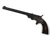 with Belgian proved octagonal 9in. barrel, blade fore-sight, standing notch rear-sight, open blued iron frame with exposed hammer and spur trigger, chequered walnut grips and push-button opening with no provision for fore-end, strong amount of finish remaining
