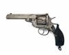 black powder circa 1880, with 5 3/4in. barrel signed on the sighting rib 'ARMY & NAVY C.S.L', the side of barrel throat marked on the left hand side ''WEBLEY'S No4 .476', thumb-wheel cylinder release, break-open hinged frame with twin Pryse-action bars, fluted auto-ejecting cylinder, arched-back chequered walnut grip (large piece from the upper front absent along with frame top-screw), iron heel-plate with lanyard ring, guarded trigger, the whole retaining a strong amount of original but frosted and dulled nickel-plated finish