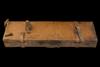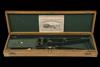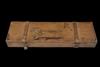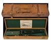 A RARE BRASS CORNERED OAK STORAGE CASE FOR A DOUBLE 12-BORE PINFIRE SHOTGUN,