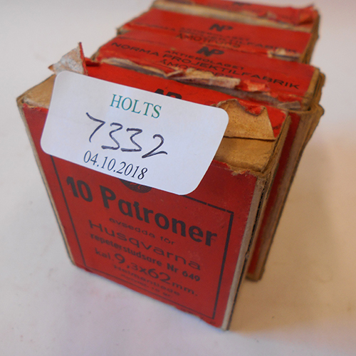 EIGHTY 9.3 X 62 CARTRIDGES BY HUSQVARNA, comprising of four original cartons of 20 rounds 15 gram fmj