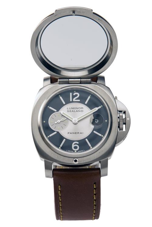 PANERAI for PURDEYS, LONDON A RARE GENTLEMANS HAND-ENGRAVED CALENDAR STAINLESS WRISTWATCH, MODEL LUMINOR SEALAND serial no. 0006...