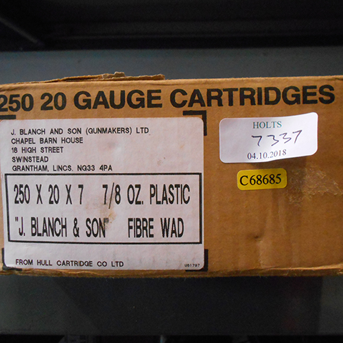 TWO HUNDRED AND FIFTY 20 BORE CARTRIDGES, contained in a sealed single slab of 7/8th oz load 7 shot,