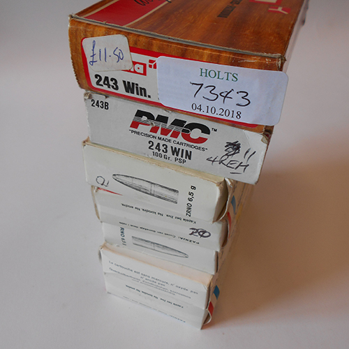 ONE HUNDRED AND SIXTEEN .243 WIN CARTRIDGES, comprising of 90 privi partisan, 6.5 gram / 100 grain gram slam sp, 11 pmc 100 grn psp, 15 norma 100grn sp.