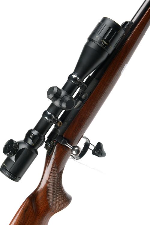 CZ .22 L.R. 'MODEL 452-2E ZKM' BOLT-MAGAZINE SPORTING RIFLE, serial no. 582047, 14in. nitro barrel, fore-sight missing, rear-sight missing, the receiver mounted with a Rhino 3-9x40 AO telescopic sight, manual safety, detachable magazine, 13 7/8in. well-figured pistolgrip stock, sling swivels