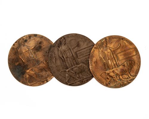 * THREE BRITISH COMMONWEALTH WORLD WAR ONE BRONZE DEATH-PLAQUES,