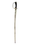 possibly Middle-Eastern, with slightly curved pipe-backed quill-tipped 33in. blade, farsi marks and a possible tughra mark at forte, sheet brass 'D' shaped knuckle-bow and chequered slab-sided composite grip with thumb-depression to the back-strap, no scabbard