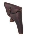 dated for 1915, with 6in. sighted barrel, break-open frame with auto-ejecting fluted cylinder, chequered hard-rubber grips and much original military finish throughout, complete with a leather full-flap service holster with auxiliary cartridge loops