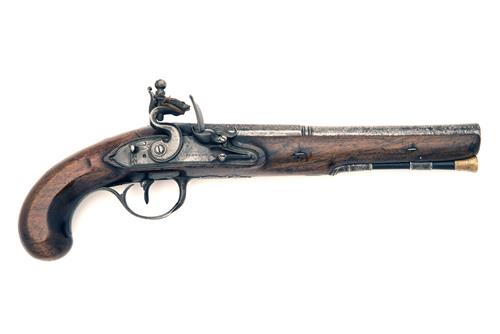 A 15-BORE FLINTLOCK OFFICER'S HOLSTER-PISTOL, no visible serial number,