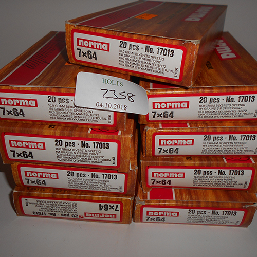 ONE HUNDRED AND EIGHTY 7 X 64 CARTRIDGES BY NORMA, comprising of nine norma retail cartons of 20 cartridges in each of 154 grain spire point