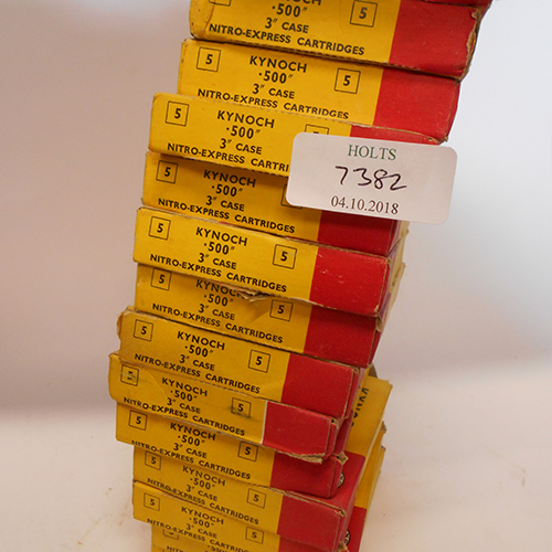 SIXTY NINE .500 X 3in. NITRO EXPRESS COLLECTABLE CARTRIDGES BY KYNOCH, comprising of 13 original cartons of 5 rounds and one carton with just 4 in it, of, 570 grain soft nose