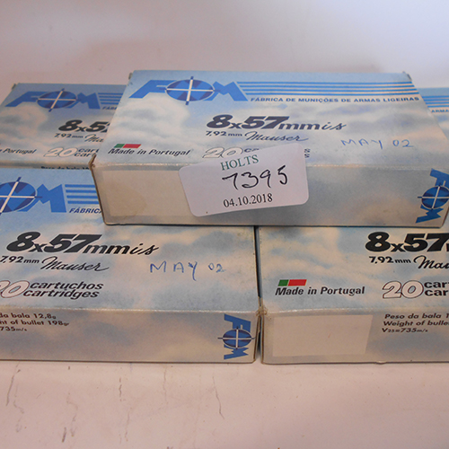 ONE HUNDRED 8 X 57 (7.92 MAUSER) CARTRIDGES BY FOM, comprising of five retail cartons of 20 rounds in each of 198 gran fmj