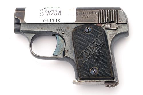 A .25 (ACP) SEMI-AUTOMATIC POCKET-PISTOL SIGNED YDEAL, MODEL 'PATENT', serial no. 22388, with 2in. barrel, hammerless slide with pop-up cocking indicator, blued frame and chequered hard rubber grips