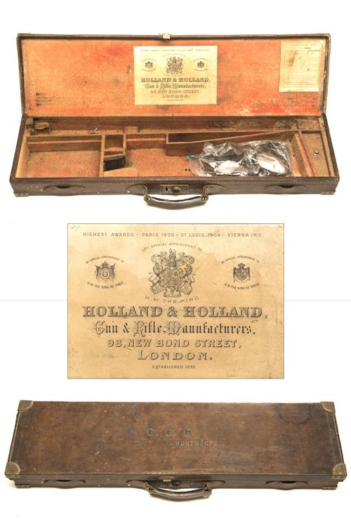 HOLLAND & HOLLAND A BRASS-CORNERED LEATHER SINGLE HAMMERGUN CASE,