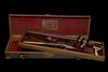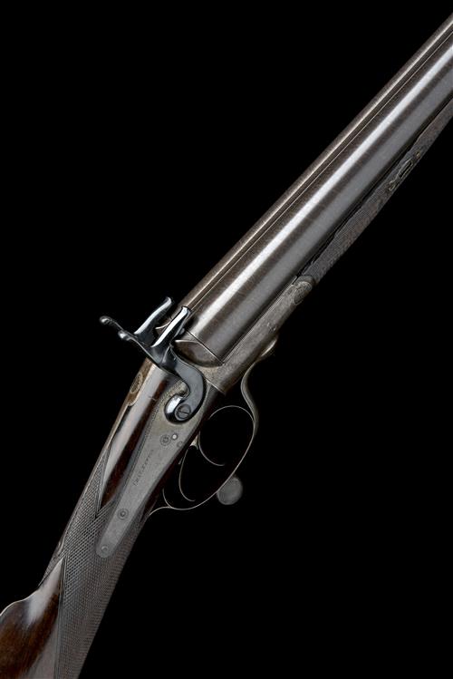 A CASED 12-BORE PINFIRE DOUBLE-BARRELLED SPORTING-GUN, no visible serial number,