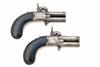 A CASED PAIR OF 80-BORE PERCUSSION TURN-OVER POCKET-PISTOLS, no visible serial numbers,