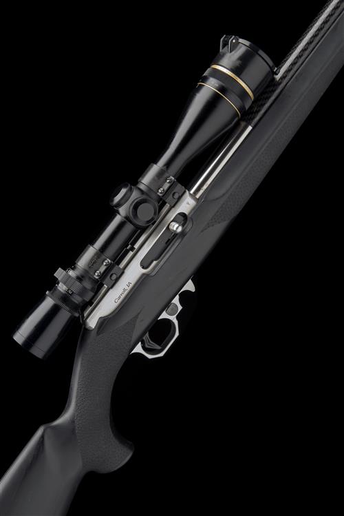 21 1/4in. carbon fibre nitro barrel including flush fitting sound moderator (17in. barrel without moderator), stainless steel receiver mounted with a Leupold Vari III 4.5-14x40 telescopic sight on an integral Picatinny rail, missing magazine, Hogue pistolgrip stock with sling eyes, 13 7/8in. pull including 5/8in. rubber recoil pad, weight 6lb. 15oz