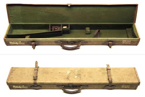 A GREEN CANVAS AND LEATHER FULL LENGTH RIFLE CASE,