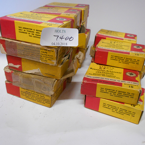 TWO HUNDRED AND FORTY 6.5 mm MANNLICHER SCHONAUER CARTRIDGES, comprises of approximately 240 cartridges in 23 period collectable kynoch cartons of varying quality.