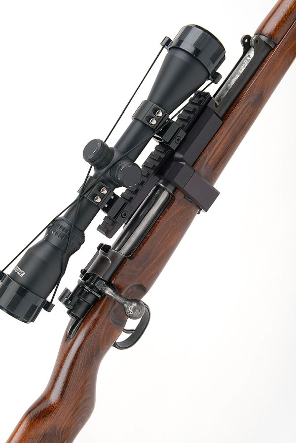 FABRIQUE NATIONALE 7.62X51mm 'MAUSER 98' BOLT-MAGAZINE SERVICE RIFLE, serial no. 64766, 24in. nitro barrel, ramp-mounted fore-sight, tangent rear-sight (removed), fitted with a Addley Precision K98 Mauser scope mount with a Hawke 3-9x40 telescopic sight, semi-pistolgrip stock, aluminium butt-plate