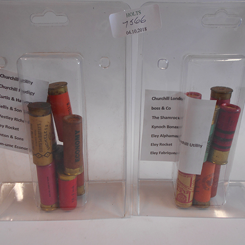 SIXTEEN COLLECTABLE 12 CARTRIDGES, comprising of one of each, churchill utility, churchill prodigy, curtis&harvey, hellis & son 2in., westley richards, eley rocket, hinton 7 sons, rem-umc economy, churchill london, boss&co, the shamrock, kynoch bonax, eley alphamax proof load special, eley fabriquee