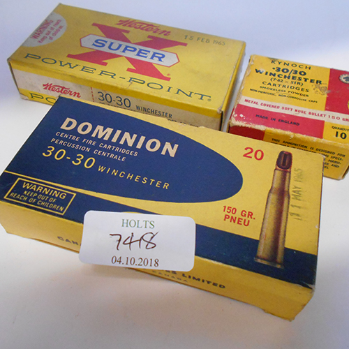 FIFTY .30-30 CARTRIDGES, comprising of 20 dominion 150 grn pneu, 20 winchester 170 grn sp, 10 kynoch 150 grn sn
