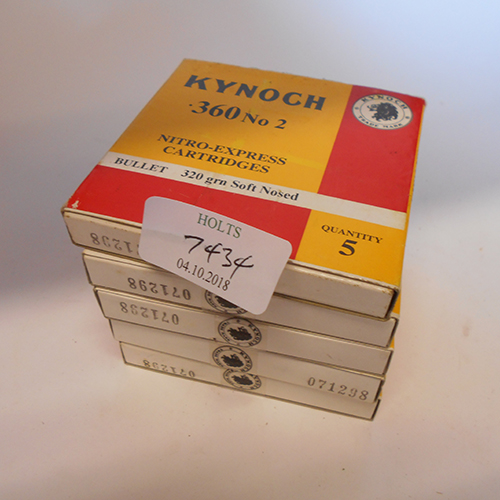 TWENTY FIVE .360 No 2 NITRO EXPRESS CARTRIDGES BY KYNOCH, comprising of five retail cartons 320 grain soft nose.
