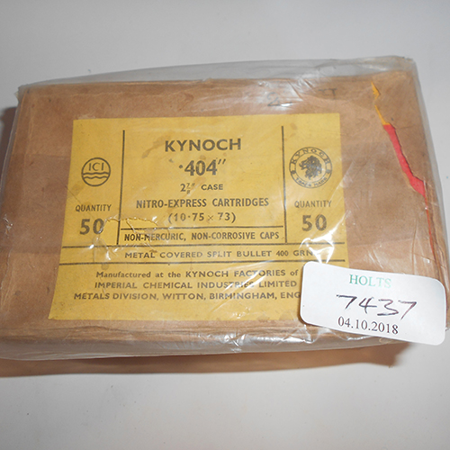 FIFTY .404 x 2 7/8in. (10.75 x 73) KYNOCH NITRO EXPRESS CARTRIDGES IN ONE BRICK,