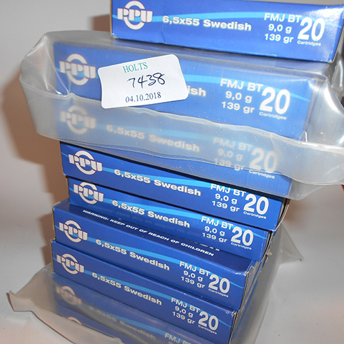 THREE HUNDRED AND FORTY 6.5 X 55 SWEDISH CARTRIDGES BY PRIVI PARTIZAN, comprising of 17 retail cartons of 20 rounds in each of 130 grain fmj boat tail.