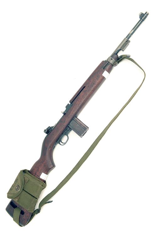 ** A .30 (M1) SEMI-AUTOMATIC CARBINE SIGNED WINCHESTER, MODEL 'M1 CARBINE', serial no. 1075126, with 18 1/2in. barrel, bayonet mount, wood half-stock and detachable magazine, complete with webbing sling and two spare magazines in pouch