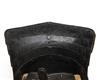 circa 1650, with domed bowl embossed with six reinforcing flutes and circular plate with hanging ring to top, applied iron visor peak, sliding nasal bar with butterfly wingnut, perforated ear-guards (possible replacements) and four lame 'lobster tail' neck guard, leather strapping replaced