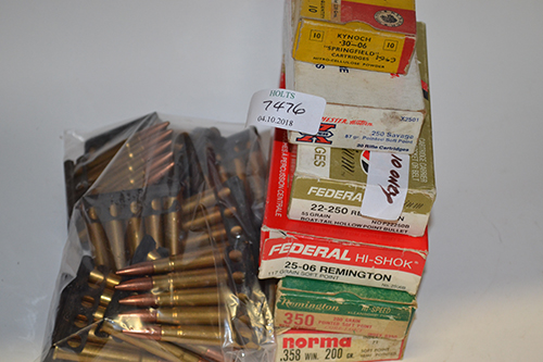 ONE HUNDRED AND FORTY NINE FULL-BORE RIFLE CARTRIDGES, comprising of 60 RG .303 issue in enfield no4 charger clips, 10 kynoch .30-06 springfield 220 grn sn, 19 norma .358 win 200grn sp, 20 remington .350 rem mag core-lokt 200grn sp, 10 federal 25-06 117 grn sp, 10 federal 22-250 hp 55grn bt, 20 savage 250 by winchester 87grn sp.
