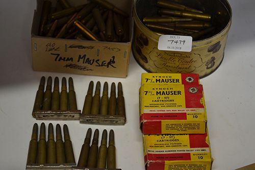 NINETY FIVE 7 X 57 CARTRIDGES, comprising of a collectable lot of 16 kynoch in original cartons, 60 loose and 19 in stripper clips
