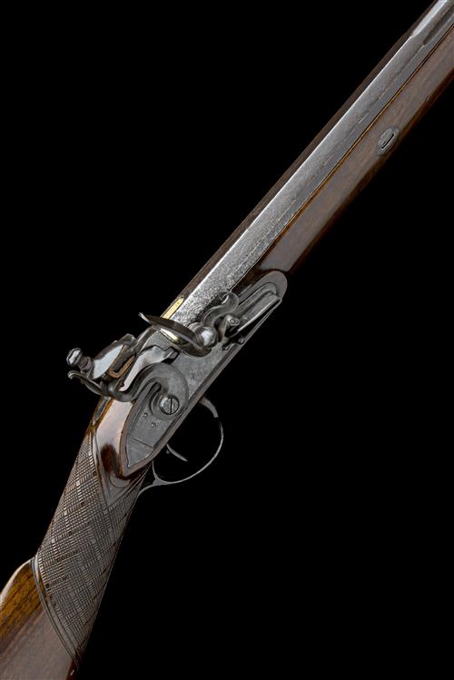 A GOOD 16-BORE FLINTLOCK SINGLE-BARRELLED SPORTING-GUN, no visible serial number,