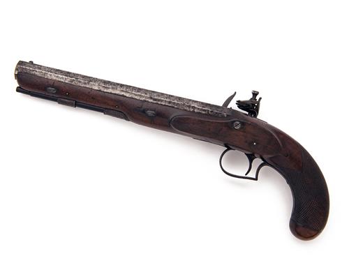 A 28-BORE FLINTLOCK DUELLING-PISTOL, no visible serial number,