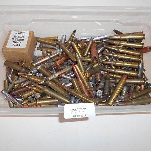 A COLLECTORS LOT OF APPROXIMATELY THREE HUNDRED INERT CARTRIDGES AND SOME BULLET HEADS. comprising of mainly military calibres, some blanks in .223 and 7.62, some pistol. drill rounds and a machine gun strip with drill rounds.