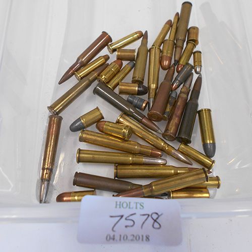 A COLLECTION OF APPROXIMATELY 30 UNSTRUCK CARTRIDGES FOR COLLECTORS, MAINLY MILITARY CALIBRES. comprising of a series of rifle and pistol cartridges which are said to be inert.