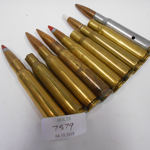 NINE .50 CAL CARTRIDGES AND CASES - ALL INERT,