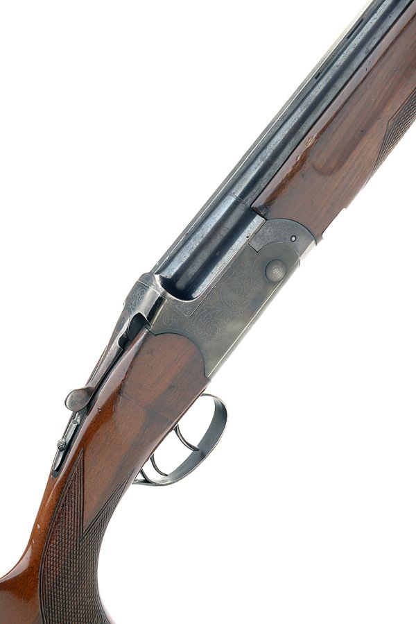 CENTURY MAGNUM EJECTOR 12-BORE (3IN.) DOUBLE-TRIGGER OVER AND UNDER EJECTOR, serial no. 82507, 30in. nitro barrels with 6mm ventilated matt rib, 3in. chambers, bored approx. 1/4 and full choke, hold-open toplever, automatic safety, blacked action with partial acanthus scroll engraving, 14 3/4in. pistolgrip stock including ventilated rubber recoil pad