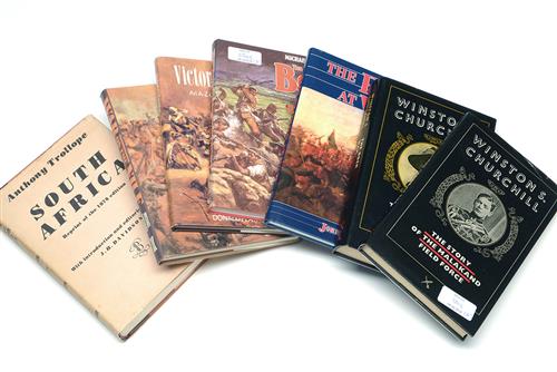A COLLECTION OF SEVEN BOOKS ON THE COLONIZED TIME OF INDIA AND SOUTH AFRICA, comprise of 'SOUTH AFRICA REPRINT OF THE 1878 EDITION' by Anthony Trollope, 'WAR ON THE NILE BRITON, EGYPT AND THE SUDAN 1882-1898' by Michael Barthorpe, 'THE EMPIRE AT WAR' by John Bowie, 'VICTORIA'S ENEMIES - AN A-Z OF BRITISH COLONIAL WARFARE' by Donald Featherstone, 'THE ANGLO-BOER WARS - The British and the Afrikaners 1815-1902' by Michael Barthorp, 'THE BOER WAR' by Winston Churchill, 'THE STORY OF THE MAKAAND FIELD FORCE' by Winston Churchill