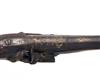 circa 1760, with two-stage round slightly swamped 6 1/4in. barrel, the top with applied gilt scroll-work (worn), solid top-tang with engraved detail, flat bevel-edged lock with pointed tail engraved with a musical trophy, signed 'MARSEILLE' below the lozenge pan, engraved cock (mechanism at fault), bridle-less frizzen, walnut full-stock with carved borders, floral apron, moulded iron bulbous butt-cap with long side-spurs, pillar trigger-guard bow and partial original wood ramrod (broken off at tip)