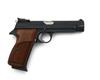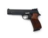 Recent, with polished 4 1/2in. barrel, matt-finished blacked slide with dove-tailed blade fore-sight and adjustable rear-sight, blacked frame with frame-mounted magazine release, chequered walnut grips and lanyard loop at heel, the whole appearing little used and housed in a abs plastic 'Sig Arms' carry-case