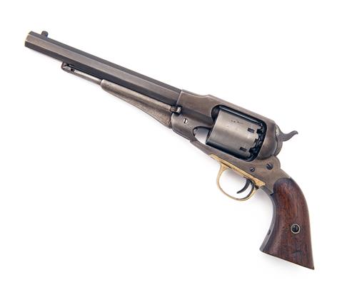 circa 1865, with 8in. octagonal barrel signed 'E. REMINGTON & SONS, ILION NEWYORK USA' below 'PATENTED SEPT 14 1858' with traces of 'NEW MODEL' beneath, solid iron frame, six-shot cylinder (cleaned), smooth walnut grips, the iron parts with inspector's letter stamps, refinished