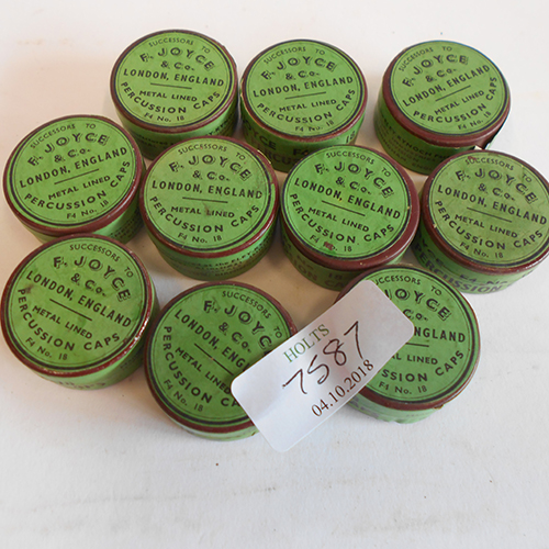 ONE THOUSAND No. 18 PERCUSSION CAPS BY JOYCE TYPE F4 IN ORIGINAL SEALED TINS.
