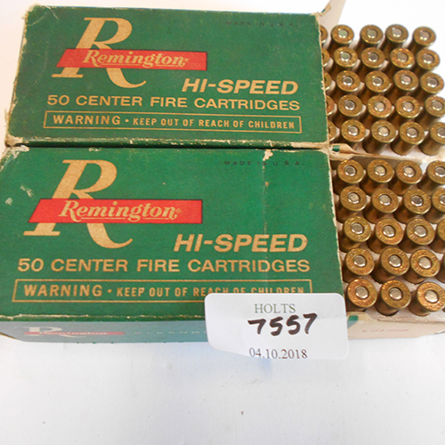 ONE HUNDRED .25-20 WIN CARTRIDGES BY REMINGTON 86 GRN SP comprising of two cartons of 50 rounds which have some discolouration to the bases
