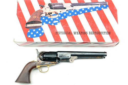 A BOXED NEW & UNUSED REPRODUCTION .44 PERCUSSION REVOLVER SIGNED PIETTA, MODEL 'REBEL 1860 ARMY', serial no. 407627, with blued octagonal 8in. barrel, stepped blued cylinder, colour hardened open iron frame and brass grip-straps, in its makers carton