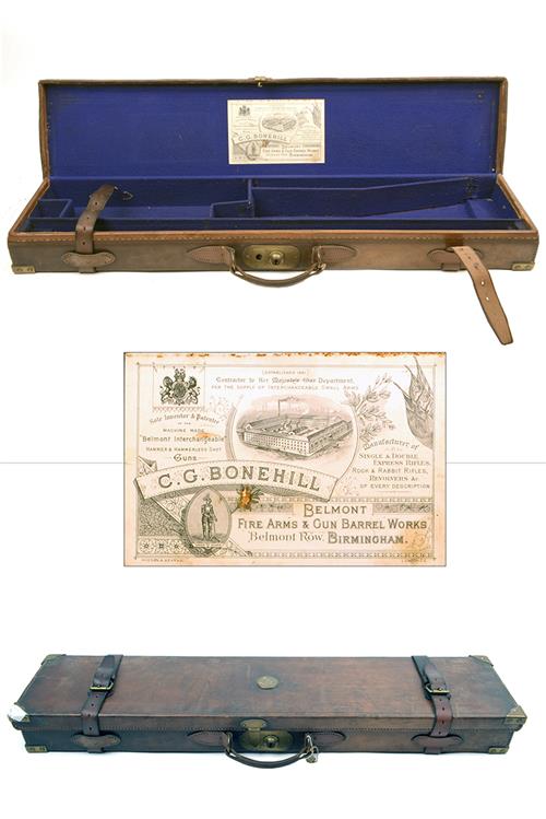 C.G. BONEHILL A BRASS-CORNERED LEATHER SINGLE SMALL-BORE GUNCASE,